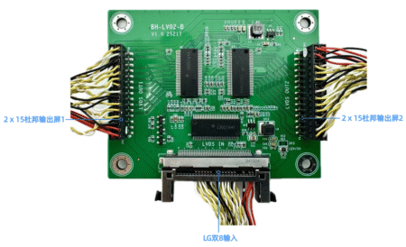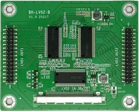 BH-LV02-B is a conversion board with LVDS signal extension and duplication functions. It can split one input signal into two outputs, enabling a single mainboard to drive two LVDS screens—making it widely applicable for ultra-thin dual-sided display requirements.
