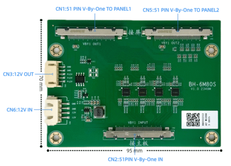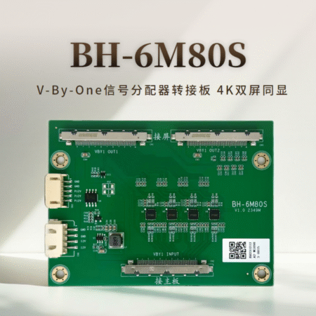 BH-6M80S is a V-By-One signal splitter conversion board. Through V-By-One signal duplication and redistribution, it enables one content display mainboard to drive two 4K V-By-One screens simultaneously—realizing 4K dual-screen synchronous display. It can also function to extend the transmission distance of V-By-One signals.