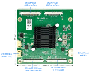 | LVDS output format | 2-channel 1920x1080 (JEIDA/VESA, 8/10 bit) 4-channel 1920x1080@120Hz (JEIDA/VESA) |