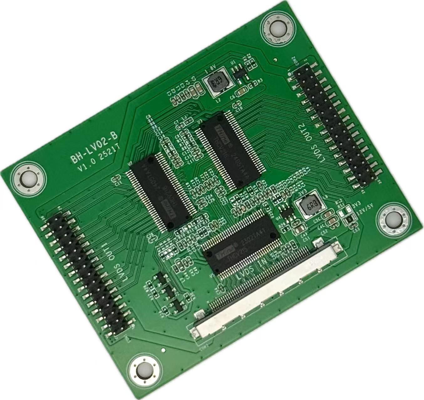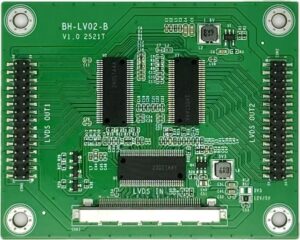 BH-LV02-B is a conversion board with LVDS signal extension and duplication functions. It can split one input signal into two outputs, enabling a single mainboard to drive two LVDS screens—making it widely applicable for ultra-thin dual-sided display requirements.